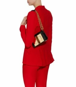 Exemplifying the label’s affinity for luxury fabrics, this TOM FORD clutch bag is rendered in metallic python skin for a sleek runway-worthy finish. Further accented by the label’s polished T clasp in an antiqued-gold finish, this petite accessory is suspended from a delicate chain strap and perfectly complements your best eveningwear.